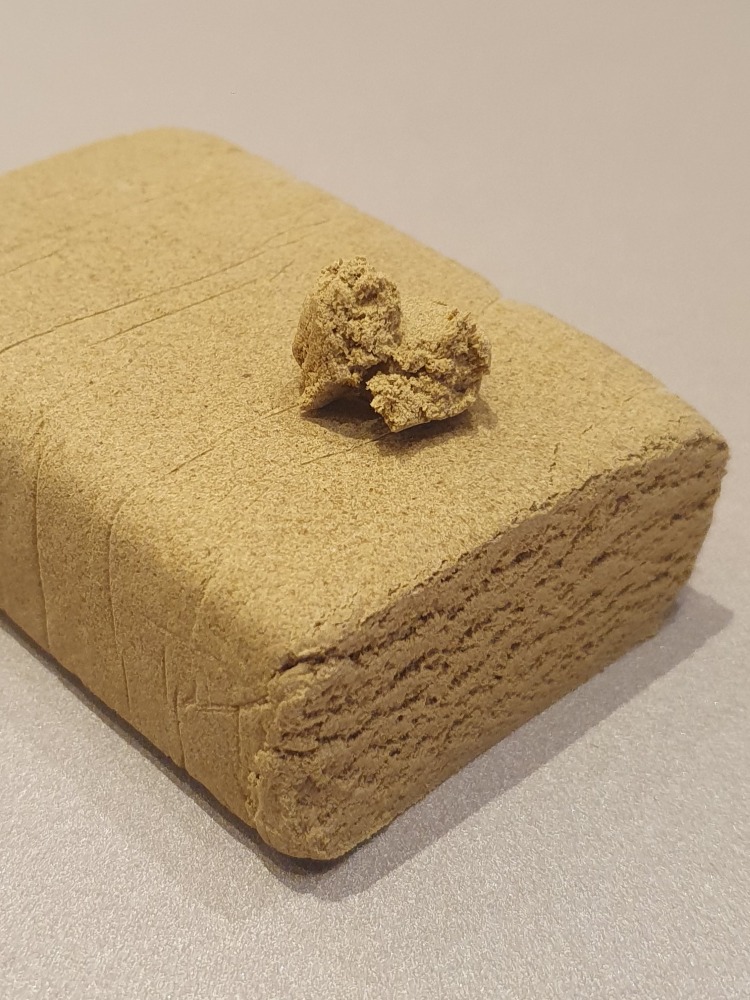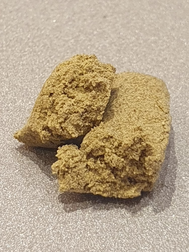 Obtenue par un tamisage à sec (Dry Sift) minutieux pour préserver la richesse des trichomes, offrant une texture malléable, crémeuse ou friable selon la compression.